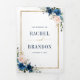 Convite de casamento geométrico moderno boho floral apresenta gráficos florais pintados à mão em aquarela / rosas em tons ricos de azul naval e rosa beije com moldura dourada. Entre em contato comigo para qualquer ajuda na personalização ou se você precisar de qualquer outro produto com este design.