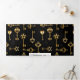 Padrão perfeito de chaves antigas, douradas e silhuetas em fundo preto.