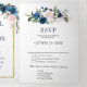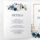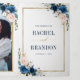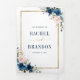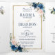 Convite de casamento geométrico boho moderno floral lindo apresenta gráficos de flores pintados à mão em tons ricos de azul marinho e rosa pink com moldura dourada. Por favor, entre em contato comigo para qualquer ajuda na personalização ou se você precisar de qualquer outro produto com este design.