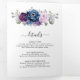 Convite de casamento com tema floral roxo lilás lavanda azul poeira elegante com buquê de flores de rosa azul poeira, roxo, lilás e folhas de eucalipto verde sálvia. Por favor, entre em contato para ajuda na personalização ou se precisar de outro produto com este design.