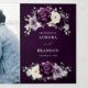 Elegante convite de casamento de verão com flores apresenta um buquê de rosas aquareladas peônias em tons de ameixa roxa, floral de champanhe marfim e sage, folhas de eucalipto botânico verde exuberante. Por favor, encontre mais designs e variações correspondentes na minha loja "blissweddingpaperie". E sinta-se à vontade para entrar em contato comigo para personalização adicional ou itens correspondentes.