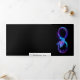 Símbolo luminoso, roxo e infinito com beija-flor azul voadora, luminosa, em fundo preto. Neon.