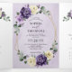 Convite de casamento elegante e moderno de verão apresenta um buquê de rosas aquarela peônias em tons de ameixa roxa, rosa poeirento, rosa desbotado, marfim, salva com folhas botânicas verdejantes e eucalipto com fundo geométrico dourado. Encontre mais designs e variações correspondentes na minha loja "blissweddingpaperie". E sinta-se à vontade para entrar em contato comigo para personalização adicional ou itens correspondentes.