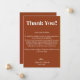 Configuração de lugar de casamento moderno em terracota cartão de agradecimento, texto padrão agradece aos convidados pela celebração e pelo presente. Adicione seu nome na parte inferior deste cartão para torná-lo seu