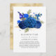Convite de casamento com lista de convidados reduzida com flores em azul real e dourado, com tipografia elegante personalizável para os detalhes do seu evento. Nesses tempos incertos, pode acontecer que você precise realizar um casamento menor do que o originalmente planejado. Este cartão de anúncio eliminará a estranheza e tirará um peso da sua mente! Você também pode oferecer a opção de participar de uma cerimônia virtual.