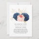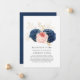 Convite de casamento com lista de convidados reduzida floral rosa, azul-marinho e dourado com tipografia elegante personalizável para os detalhes do seu evento. Nesses tempos incertos, pode acontecer que você tenha que realizar um casamento menor do que o originalmente planejado. Este cartão de anúncio vai tirar a desconfortabilidade e tirar um peso da sua mente! Você pode ainda oferecer a opção de se juntar a você para uma cerimônia virtual.
