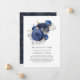Convite personalizável de lista de convidados de casamento reduzida de rosa azul marinho, dourado e prateado para o seu evento. Nestes tempos incertos, pode acontecer que você tenha que realizar um casamento menor do que o originalmente planejado. Este cartão de anúncio irá tirar a estranheza e tirar um peso da sua mente! Você pode ainda oferecer a opção de participar de uma cerimônia virtual.