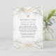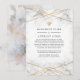 Anúncio de cartão de lista de convidados de casamento reduzida com uma textura de mármore com uma moldura geométrica dourada e um reverso de mármore com folha de ouro. Nesses tempos incertos, pode acontecer que você tenha que realizar um casamento menor do que o originalmente planejado. Este cartão de anúncio irá tirar a estranheza e tirar um peso da sua mente! Além disso, você pode fornecer uma opção para se juntar a você para uma cerimônia virtual.