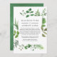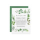 Jasmine, hera e samambaias cartão de anúncio de lista de convidados de casamento reduzida na floresta selvagem. Nesses tempos incertos, pode acontecer que você tenha que realizar um casamento menor do que o originalmente planejado. Este cartão de anúncio vai tirar a estranheza e tirar um peso da sua mente! Você pode ainda oferecer uma opção para se juntar a você para uma cerimônia virtual.