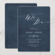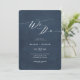 Convidamos com texto em azul marinho elegante letra cursiva para convite de casamento elegante. Fundo azul marinho pintado à mão. Parte de uma coleção.
