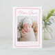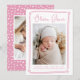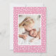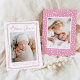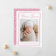 Comemore a chegada da sua filhinha com este cartão de nascimento de foto rosa personalizável. Apresentando a foto de seu recém-nascido moldada por uma doce borda cardíaca desenhada à mão, esta design moderna destaca seu nome em uma fonte encantadora de roteiro. O esquema de cor rosa e branco suave adiciona um toque quente e elegante que é ideal para apresentar o seu pequeno à família e aos amigos. A parte de trás do cartão oferece espaço para uma segunda foto, lindamente emoldurada com um padrão cardíaco rosa. Personalize facilmente as fotos e o texto para criar um cartão único de manutenção ou anúncio de bebê que os entes queridos irão tesourar.