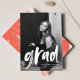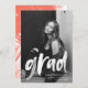 Cartões de agradecimentos de graduação moderno com a foto do formando com "formando" em uma cobertura de script de pincel branco. Personalize a frente do cartões de agradecimentos de graduação adicionando o nome do formando, a escola, o nome e o ano de graduação. A parte traseira da placa apresenta espaço para a sua mensagem escrita ou manuscrita com um fundo de pincéis de coral pintados.