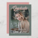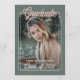 Cartão de convite de festas de formando único e moderno, com cinza clássico verde e cor de laranja de coral esfarelado, com parabéns de celebração e anúncio de de tendências. Com espaço para personalizar ou personalizar com uma foto, o nome do formando, o ano de graduação, o segundo grau, o nome da futura faculdade ou universidade e as informações sobre eventos de festas de celebração. Deixe a família, amigos e vizinhos saberem que há um formando feliz pronto para conquistar o mundo, e convide todos a virem celebrar o feliz evento com vocês!