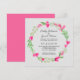 Flores cor-de-rosa com ramos de verde e folhas desenham a moldura superior e inferior do convite. Um fundo colorido com a fonte dá-lhe um visual de elegância. Personalize este modelo para adicionar a sua informação. O design é uma grinalda floral e pode ser personalizado para caber dentro do cartão. Clique para personalizar ainda mais e fazer mais alterações. Tudo é personalizável.