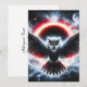 Magnífica coruja estendendo suas asas sob um eclipse celestial brilhante.