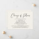 Anúncio moderno e elegante de mudança de planos de adiamento de casamento em creme claro. "Mudança de Planos" é escrito em uma fonte estilosa e você pode personalizar facilmente os detalhes do seu adiamento.