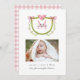 Elegante crista monogramada em aquarela com anúncio de nascimento de menina em rosa e verde.