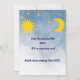 O anúncio perfeito para as pessoas acolhendo gêmeos fraternos! O sol e a lua representam os dois gêmeos separados. Um fundo azul-aquarela e o texto azul escuro complementam o sol dourado, a lua, e o enforcamento que o acompanha começa. As estrelas que se prendem também aparecem no verso,
