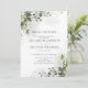 Comunique aos seus convidados a mudança de data com estilo com este elegante e moderno aviso de adiamento de data de casamento com verde de eucalipto em azul empoeirado, apresentando verde de eucalipto pintado à mão em aquarela, floreios e pontos em aquarela. O campo de título é um modelo e você pode alterar a redação para torná-lo seu—'mudar a data', 'desculpe pelo inconveniente', 'adiar a data', 'cancelar a data', 'data adiada' ou qualquer texto que funcione melhor para você e seu evento. Copyright Elegant Invites, todos os direitos reservados.