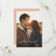 Se você precisar adiar o seu casamento, compartilhe a nova data com amigos e familiares com este anúncio de mudança de data. Ele apresenta uma única foto que ocupa toda a área da frente do cartão, juntamente com uma faixa desenhada à mão com as palavras "mudar a data" escritas à mão. O verso do cartão tem espaço para uma mensagem pessoal.