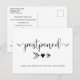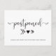 Deixe seus convidados saberem que a data do seu casamento foi adiada com este elegante anúncio de adiamento de casamento moderno. "adiado" é escrito em tipografia elegante e abaixo, apontando para um futuro de amor, há uma seta e um coração. Você pode personalizar seus nomes e o anúncio de adiamento na frente e fornecer mais detalhes no verso, como uma nova data ou se uma nova data será divulgada quando você a tiver.