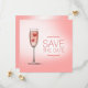Anúncio de casamento personalizável com design fofo e romântico com uma taça de champanhe rosa contendo dois corações de doce vermelhos.