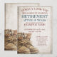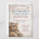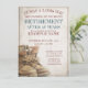 Anúncio de aposentadoria com velhas botas de cadarço vestidas e em punho no estilo vintage. Texto relacionado ao gênero, o ano, o texto honorário, a data, a hora, o local de celebração e RSVP podem ser personalizados.