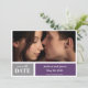 Salve a data do seu casamento com este simples anúncio de salvar a data com bloqueio de cor prateado e roxo.