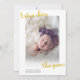 anúncio de cartão de nascimento de bebê com alegria extra este ano. Com um nome personalizado e nome da família e tipografia dourada no topo. Pode ser personalizado para mudar de cor ou se houver algum problema de redimensionamento de imagem.