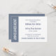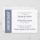 Aqui está um cartão ousado e moderno para notificar seus convidados se for necessário mudar sua data de casamento. Use os campos modelo para adicionar seus detalhes pessoais e tornar esse design único e simples seu. Uma banda colorida ao longo da esquerda é um azul empoeirado escuro, combinando o texto e a parte traseira da placa; "ANÚNCIO" aparece em negrito branco sobre esta fita à esquerda. Todas as fontes e cores também são editáveis. Por favor, responda a quaisquer solicitações especiais ou personalize a assistência. Outras peças com texto alternativo também estão disponíveis na coleção.