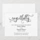 Se você está enfrentando a infeliz necessidade de cancelar seu casamento, esta peça pode atender às suas necessidades. A distinção deste conjunto se deve à elegante escrita cursiva usada para frases de destaque. Neste design, a fonte caligráfica foi usada para criar um gráfico vívido que representa a palavra "lamentamos". Use os campos do modelo para adicionar seus detalhes pessoais e tornar este design único seu. O fundo branco pode ser alterado para qualquer cor que você preferir. Por favor, entre em contato para qualquer solicitação especial ou para obter ajuda na personalização. // 86//