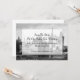 Bonito anúncio de casamento de conto de fadas Save the Date, com ilustrações vintage de um castelo em preto e branco. Uma área mais clara, no meio, tem texto preto pronto para personalizar com as informações do seu casamento. Ótima maneira de anunciar seu próximo casamento com antecedência para convidados de fora da cidade.