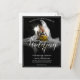 Anúncio de casamento com uma foto de uma noiva sonhadora sentada com um buquê amarelo de flores na penumbra - estilo clássico. Os nomes, texto, localização e data podem ser personalizados no modelo.