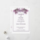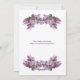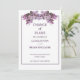 Anúncio de casamento com buquê floral de adiamento do Save The Date em uma fonte de letra cursiva elegante lavanda escura juntamente com sua mensagem. Tudo rodeado por uma fina borda lavanda escura.