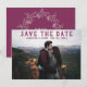 Adicione a foto do casal favorito a este cartão de anúncio de casamento com data de reserva. Para personalizar, basta inserir sua imagem em nosso modelo, substituindo a amostra. Clique: PREENCHER para cobrir a frente. Em seguida, adicione seu texto no modelo: Nomes da Noiva e do Noivo e Data do Casamento. O texto reverso inclui: Convite a seguir, cercado por uma suave coroa floral. As cores podem ser alteradas usando nossa ferramenta de seleção de cores.