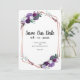 Save the Date Flores Roxas Romântico para o anúncio do seu dia especial. Parte da coleção de casamento roxo. Para personalização avançada, clique no botão "Personalizar" acima. Itens correspondentes disponíveis