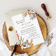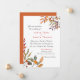 Convite de casamento elegante pintado à mão com folhagem de outono em tons de laranja, dourado e ferrugem.