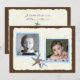 Anúncio de casamento fofo com foto de bebê. Use as fotos de bebê da noiva e do noivo para anunciar o casamento que se aproxima. Duas estrelas-do-mar na frente lhe dão um tema de praia.