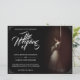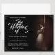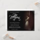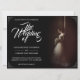 Anúncio de casamento com a imagem de uma noiva sonhadora inclinada contra uma parede com um buquê de flores brancas na penumbra - estilo clássico. Os nomes, texto, localização e data podem ser personalizados no modelo.