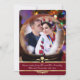 Crie um dentro de retrato único e recém-casado, um belo globo de neve para um anúncio memorável de casamento com um tema de feriado. Partilhe a alegria e o amor da época natalícia e partilhe um momento festivo com amigos e família, com o efeito mágico da vinheta numa bola de cristal com luzes coloridas de árvores no fundo do boque. Com sotaques de folha de ouro falsos de rico e vermelho burgundy rico, este cartão de feriado é divertido e elegante.