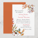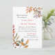 Convite de casamento elegante pintado à mão com aquarela com folhagem de outono em laranja, dourado e folhas de ferrugem.