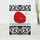 Um anúncio de casamento preto e branco clássico com uma fotografia de um brilhante diamante que repousa sobre uma pétala de rosa vermelha contra um fundo branco.