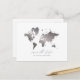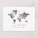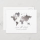 O mapa do casamento do efeito metálico de prata salva o cartão postal. Com um belo mapa clássico do mundo prateado, coração móvel para posicionar sobre a sua localização e espaço para a localização do nome e detalhes adicionais. Ideal para casamentos de locais estrangeiros ou só porque você ama seu estado