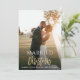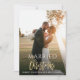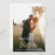 design com uma foto da noiva e noiva e tipografia elegante do pincel de ouro falso. O texto e as cores podem ser personalizados.