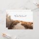 Cartões planos de anúncio de casamento com imagens de dunas de areia. Personalize ambos os lados com “Nós amarramos o laço” ou outra redação na frente. Os nomes e as informações da cerimônia de casamento vão no verso. A imagem é um caminho arenoso através das dunas com grama e uma cerca de postes.