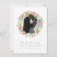 Esta design mostra uma foto do dentro casal feliz de uma bela coroa florida de salmão. Os nomes dos casais e os detalhes do casamento são exibidos abaixo e podem ser personalizados. Gráficos ©Lilian Ellaboudy Design