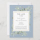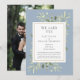 Com delicada vegetação em aquarela sobre um fundo dusty blue, este cartão de anúncio de casamento botânico elegante pode ser personalizado com sua foto especial e detalhes do dia do casamento. Criado por Thisisnotme
