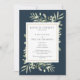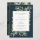 Com delicada folhagem em aquarela sobre um fundo azul marinho, este cartão de anúncio de casamento botânico chic pode ser personalizado com sua foto especial e detalhes do dia do casamento. Desenhado por Thisisnotme©