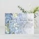Anuncie sua recente cerimônia de casamento do jardim privado ou elopeio secreto com o elegante Anúncio do Casamento Blue Hydrangea. Este bonito casamento botânico ou anúncio elopemento personalizado apresenta uma fotografia floral melhorada digitalmente de uma flor azul de hydrangea. Disponível como um convite impresso para envio por correio ou como um download digital para fácil compartilhamento digital online.