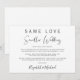 Anúncio de casamento menor moderno e elegante. "Mesmo Amor, Casamento Menor" está escrito em uma mistura de tipografia simples e uma escrita contemporânea. Você pode personalizar facilmente sua mensagem, adicionar seus nomes em uma escrita semelhante a uma assinatura e adicionar o site do seu casamento no verso para que amigos e familiares encontrem mais informações, como links de transmissão ao vivo da cerimônia.